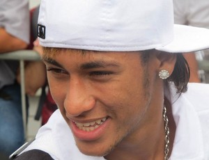 Com o filho por perto, Neymar é só sorrisos na Vila